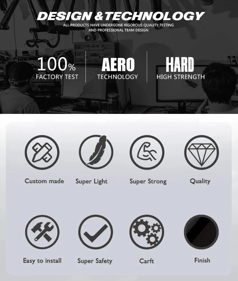 Our carbon bike parts utilize Aero Technology, designed to minimize air resistance and maximize speed, making them perfect for both competitive and leisure cycling.